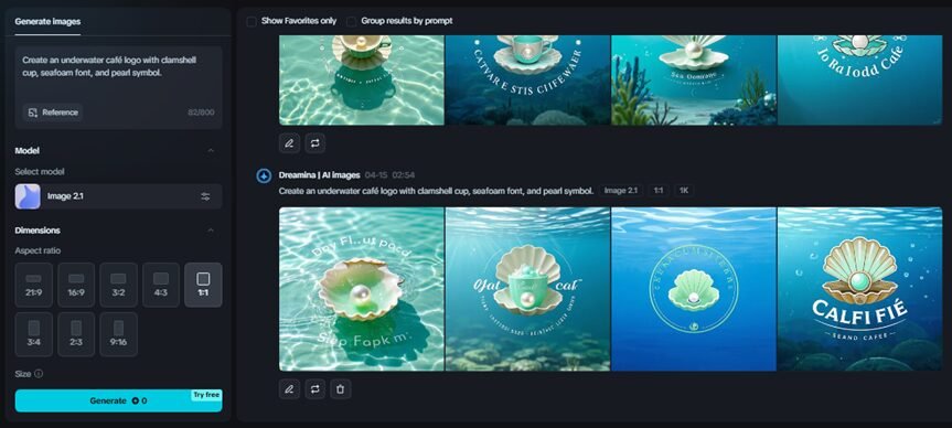 Dreamina’s AI logo generator is perfect for imaginative, creative branding. You can combine fantasy symbols and food motifs to create mythical restaurant identities. Use prompts such as: “logo for a magical dragon diner, featuring a fire-themed design with food symbols, a fantasy font, and glowing details” or “an underwater café logo with a clamshell cup, seafoam font, and a pearl symbol.”