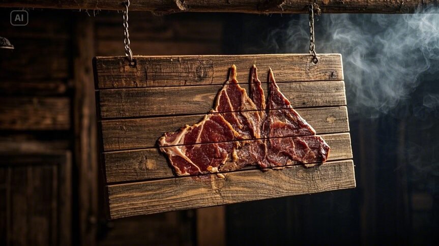 • Volcanic BBQ shack board: Smoky wood signs with meat dishes scratched out using a claw—bonus: singed edges.